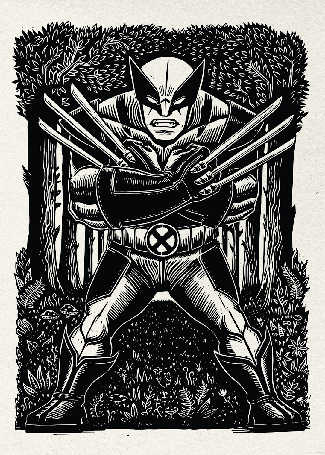 Plakat Linoleumstryk: Marvel Wolverine 50x70